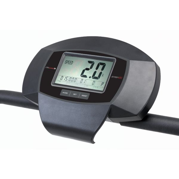 • Displej. Přehledný LCD displej (12,2 x 7,2 cm) měří čas, rychlost, tréninkovou vzdálenost, celkovou vzdálenost (do výměny baterie), puls a počet spálených kalorií. Funkce Scan - automatická změna tréninkových hodnot na displeji.