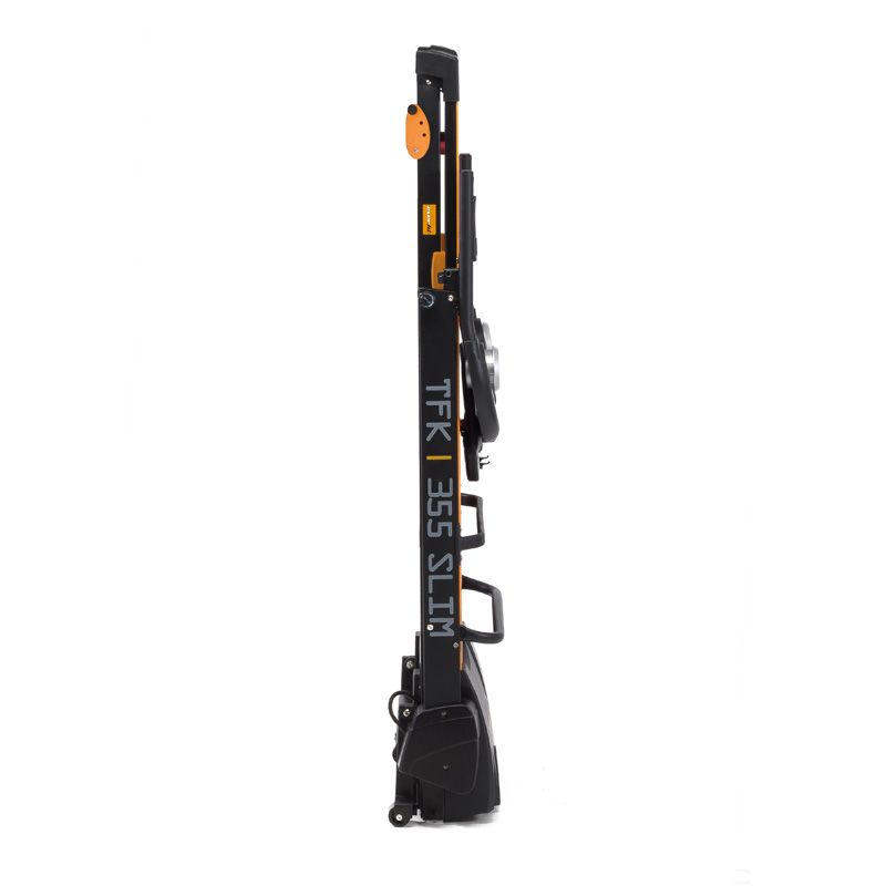 Sklopitelný běžecký pás EVERFIT TFK 355 SLIM je ideální pro všechny sportovní nadšence, kteří preferují pravidelní kondiční trénink v prostředí domácí posilovny. Pás je vybaven kvalitně odpruženou běžeckou plochou o rozměrech 127 x 43 cm, 14 tréninkovými programy a dlaňovými senzory pro měření pulsu. Multifunkční tréninkový počítač s modře podsvíceným displejem a intuitivním ovládáním (včetně volby rychlosti) informuje o všech důležitých tréninkových hodnotách. Velkou výhodou je možnost složení pásu do kompaktních rozměrů – po sklopení se pás pohodlně vejde například pod gauč nebo za skříň.
