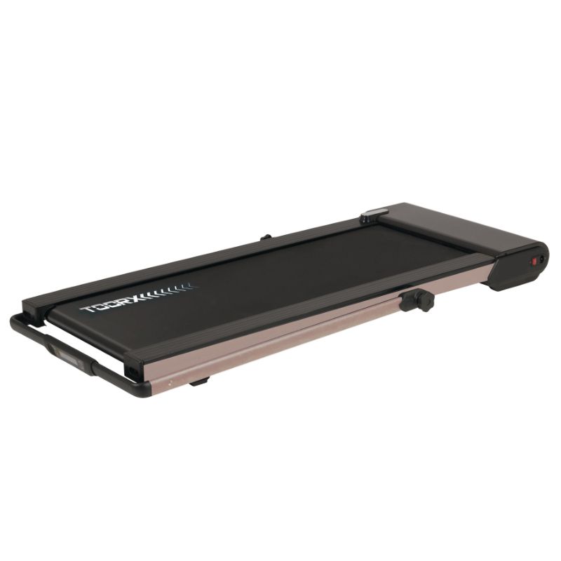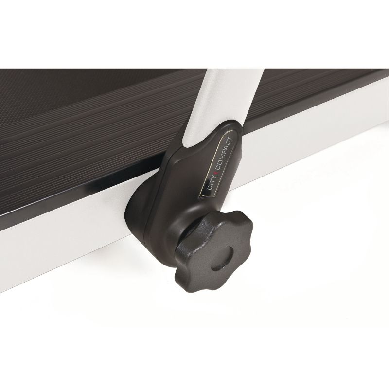 Běžecký pás TOORX CITY COMPACT zaujme na první pohled moderním designem, jednoduchým provedením a kompaktními rozměry. Pás se perfektně hodí do každého, i prostorově menšího, interiéru. Díky svým rozměrům nezabere moc místa a snadno se skladuje – pohodlně se vejde pod pohovku, pod postel nebo za skříň. Odpružená běžecká plocha o rozměrech 125 x 44,5 cm je vhodná zejména na chůzi nebo pro lehčí běh. Sklopitelné madlo má přímo před očima uživatele integrovaný LCD displej, který přehledně informuje o základních tréninkových hodnotách. Velkou výhodou pásu je také snadná a rychlá montáž, stačí pár minut a pás je připraven k použití.