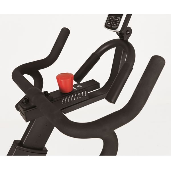 trenažér pro indoor cycling, magnetická brzda s elektronickým nastavením zátěže, 24 stupňů zátěže, 20 programů, Bluetoth rozhraní, hrudní pás, plně nastavitelný, držák na láhev, kalibrovaný 20 kg setrvačník, hmotnost 43 kg, nosnost 130 kg