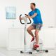 - Vybavení trenažéru. Sportovní sedlo s možností výškového a horizontálního posuvu, ergonomická řídítka s nastavitelným sklonem v rozmezí 360 stupňů, stabilní konstrukce pro maximální zatížení až 150 kg, samonastavovací řeménkové pedály, kolečka pro manipulaci (umístěná vpředu), mechanismus vyrovnávání nerovností podlahy (vzadu).