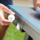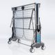 - Součástí stolu je síťka s možností výškového nastavení a s automatickým napínáním, kterou není nutné před sklopením hracích ploch demontovat.