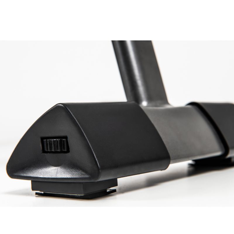 • Mechanismus překlopení trenažéru. Překlopení trenažéru do vertikální polohy je velmi praktickým řešením zejména při nedostatku úložných prostor, umožňuje tak bezproblémové skladování veslovacího trenažéru i v menších místnostech. Manipulaci s trenažérem usnadní transportní kolečka (umístěná vpředu).